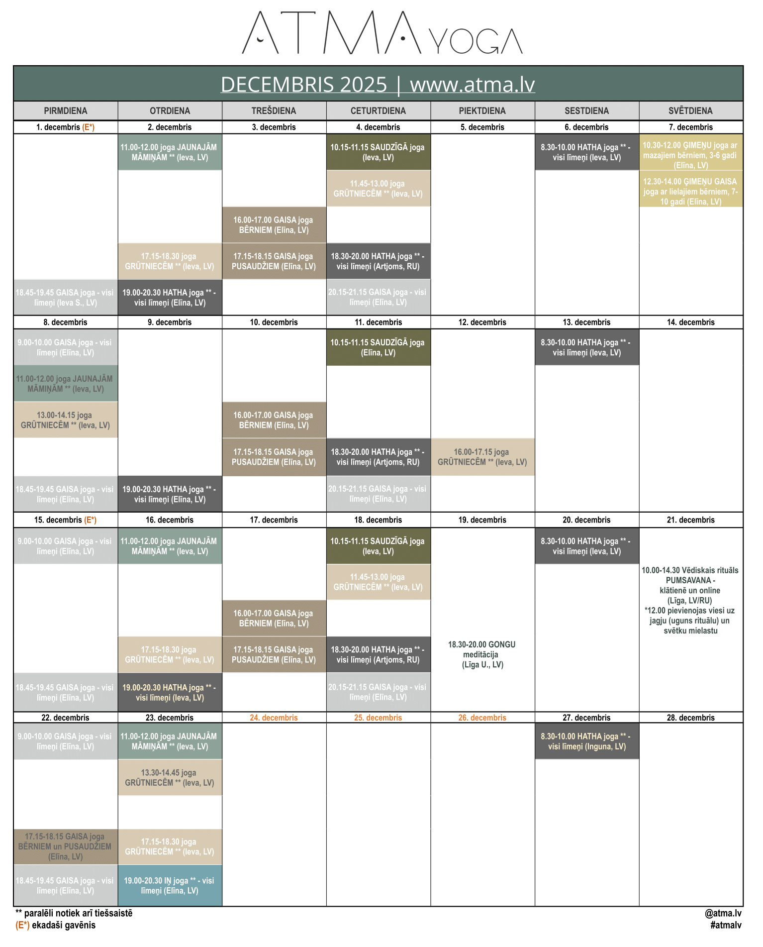 Uz nodarbību vēlams ierasties 5-15 minūtes iepriekš, lai pagūtu saģērbties un noskaņoties nodarbībai.